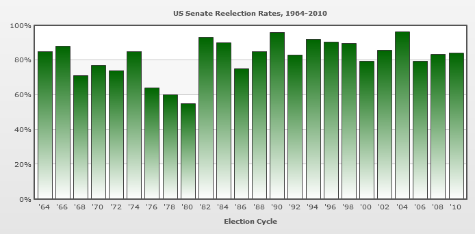 Are incumbents winning so often because they’re the best candidates? Hardly. It’s simply a function of familiarity. People go to the polls and tend to vote for the person they’re most familiar with and the farther you go down in terms of elected offices the worse it is because quite often people vote for the incumbent simply because they know nothing about the other person running. When you’ve seen or heard about your congressman for the past four years or your senator for the last six years that’s a lot of familiarity for a challenger to overcome.
